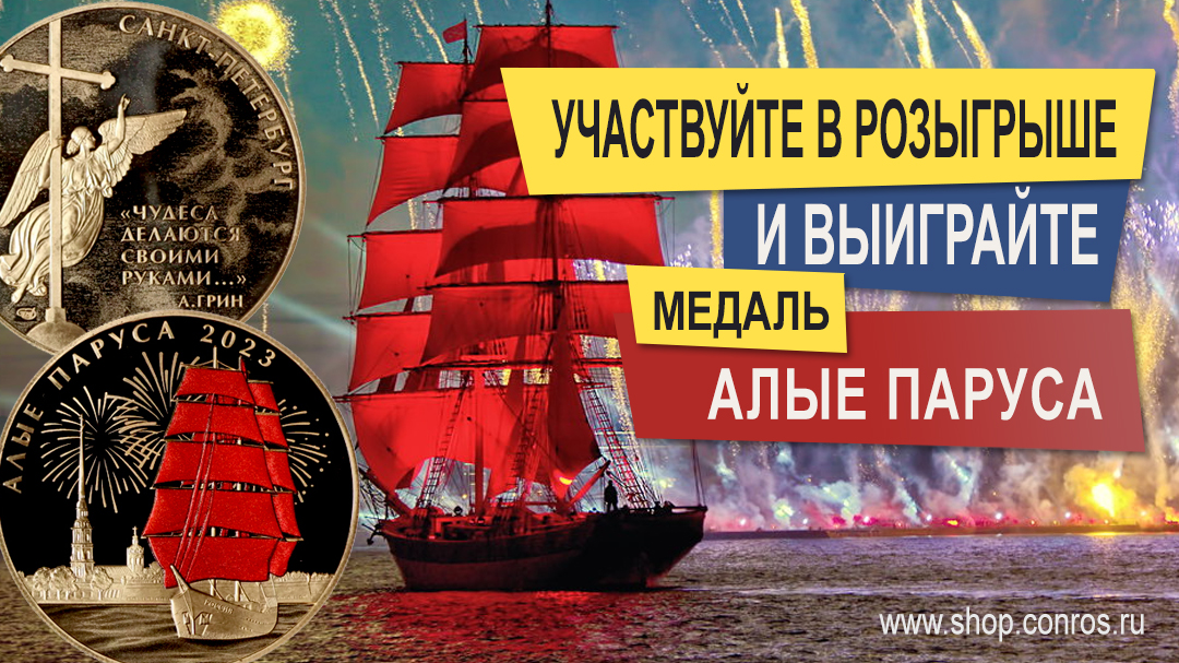 РОЗЫГРЫШ ⛵АЛЫЕ ПАРУСА. ПРИЗ - Памятная медаль Санкт-Петербургского монетного двора - Алые паруса 2023 года